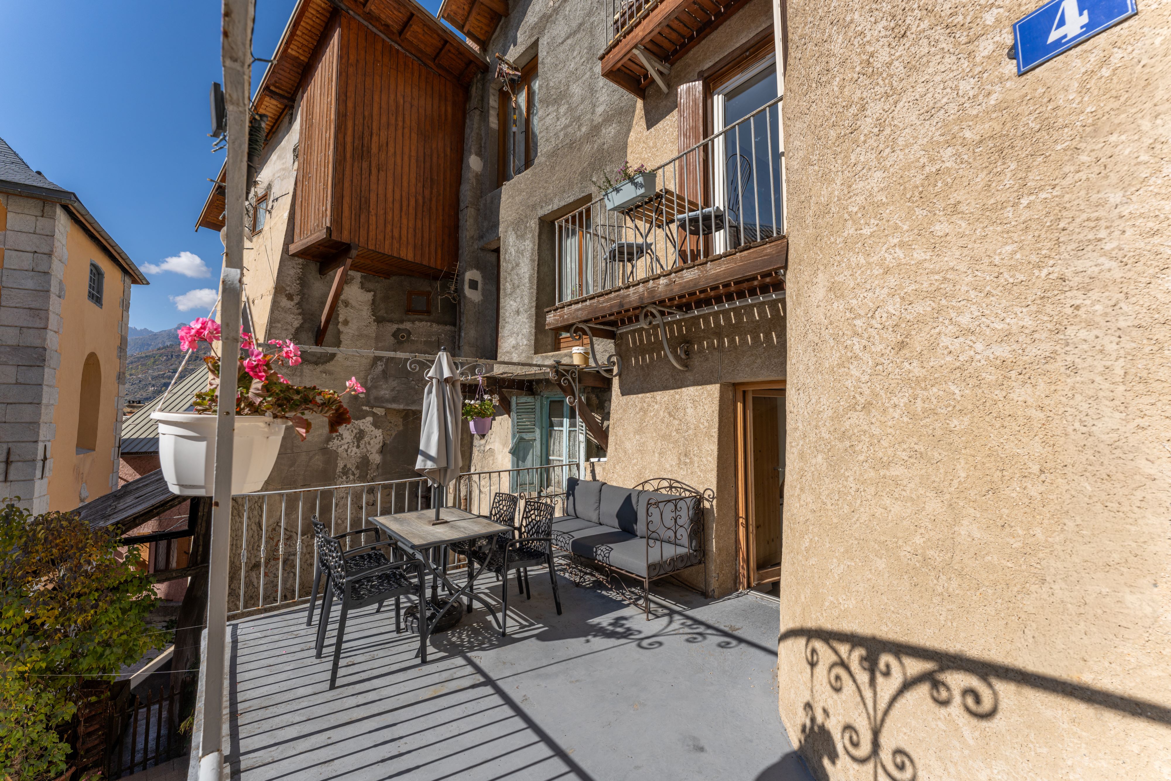South-facing terrasse with table, chairs and sofa