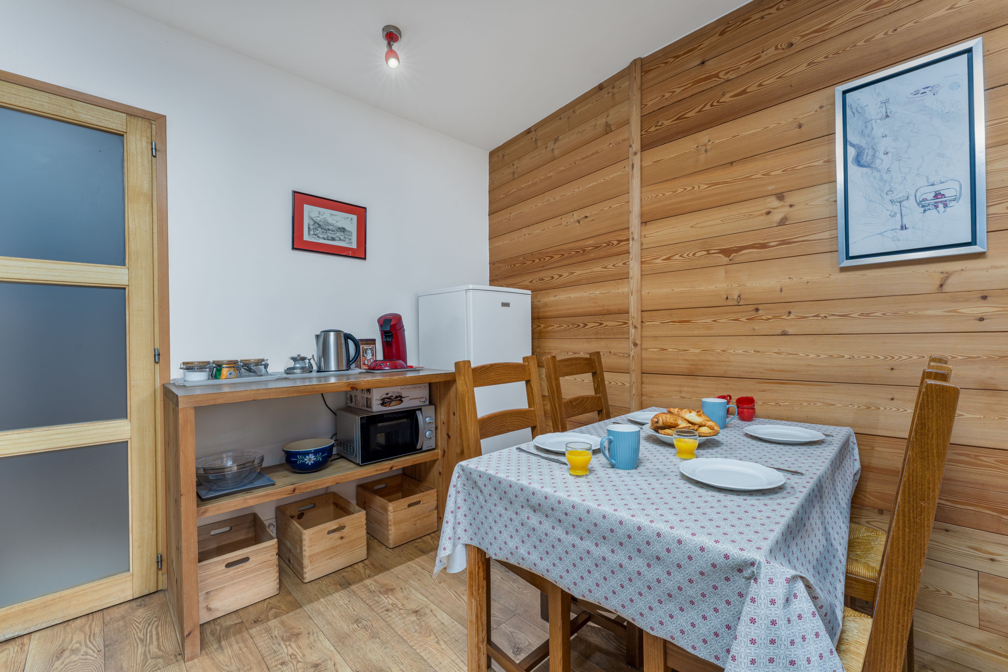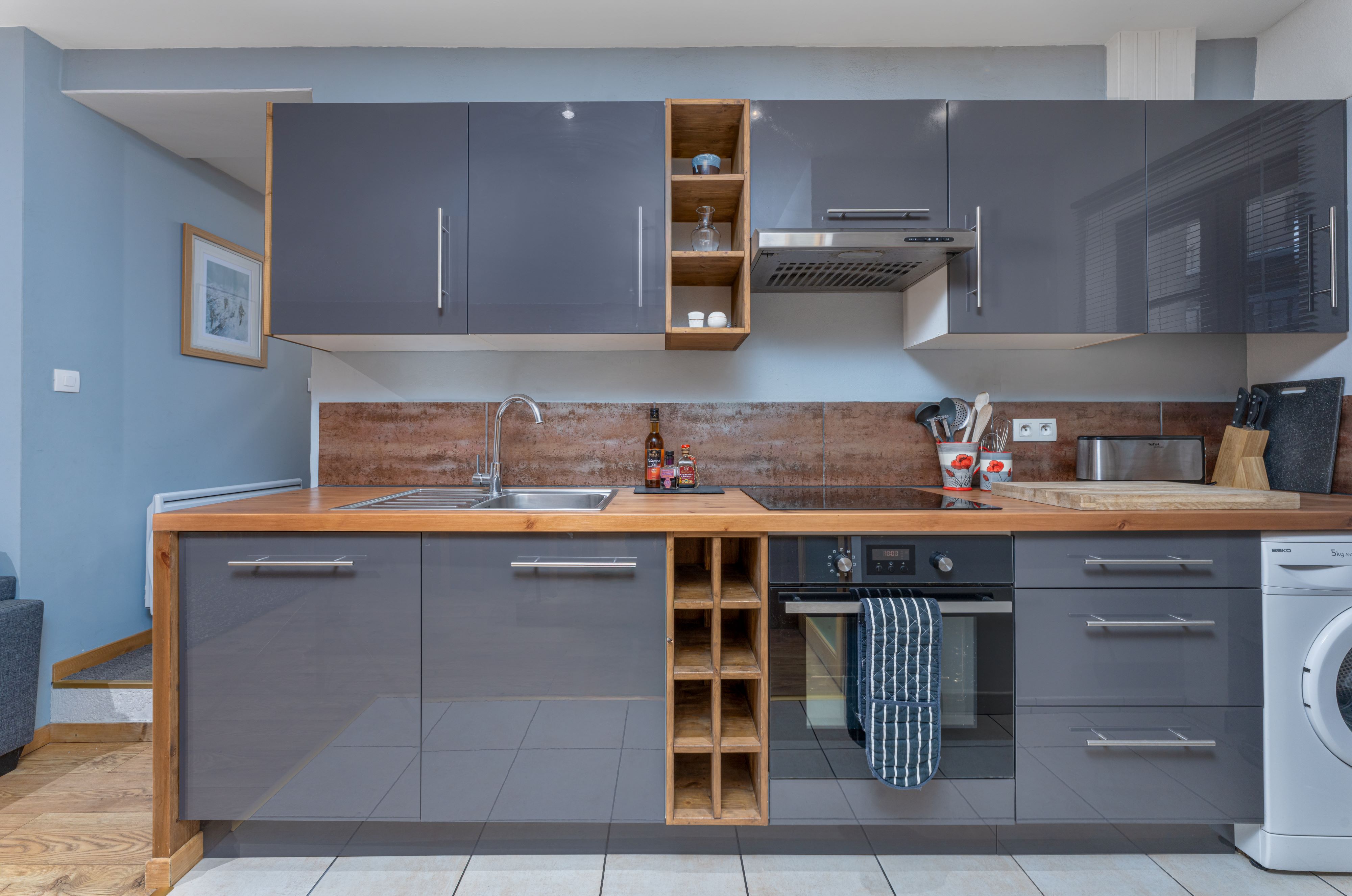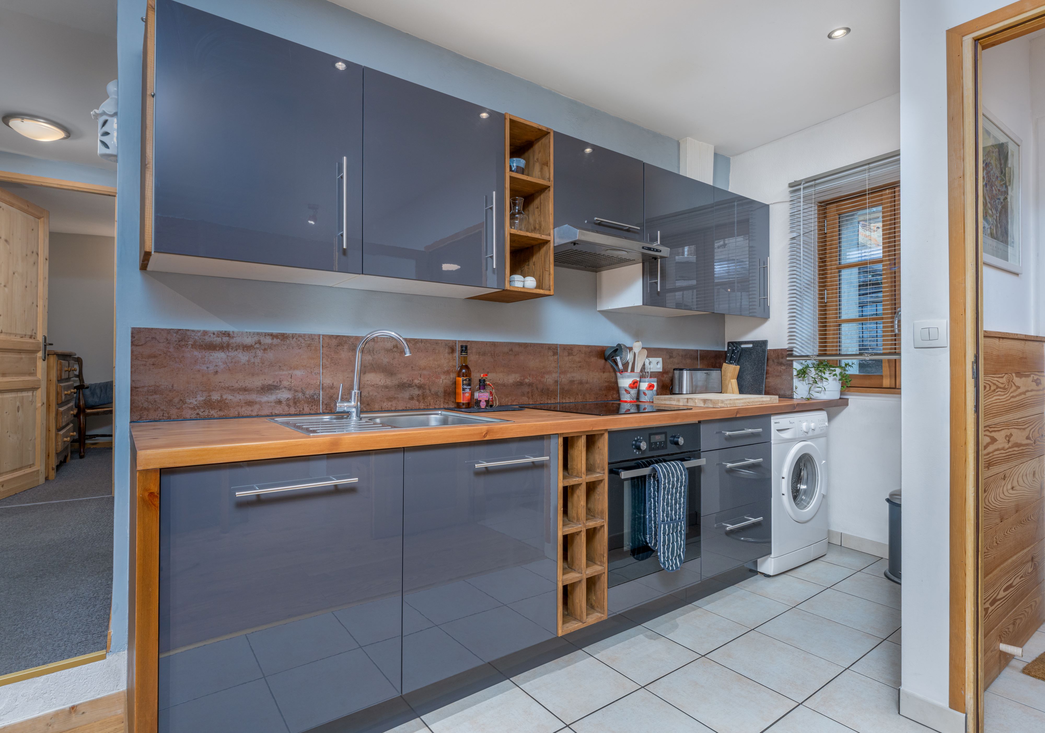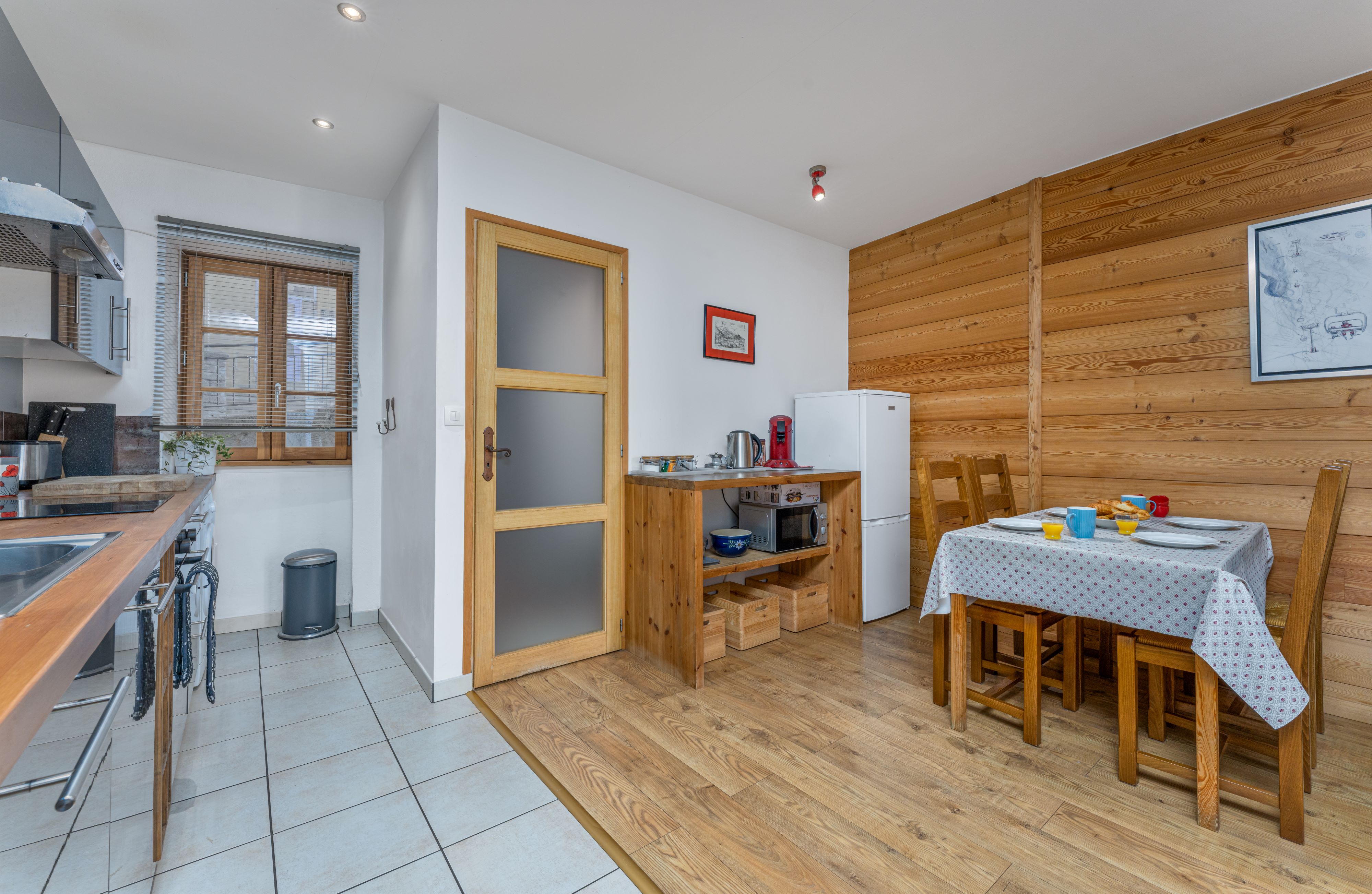 Cuisine entièrement équipée, plan de travail généreux, grand réfrigérateur-congélateur, tout ce dont vous avez besoin pour un séjour indépendant – pour quelques jours ou un mois !