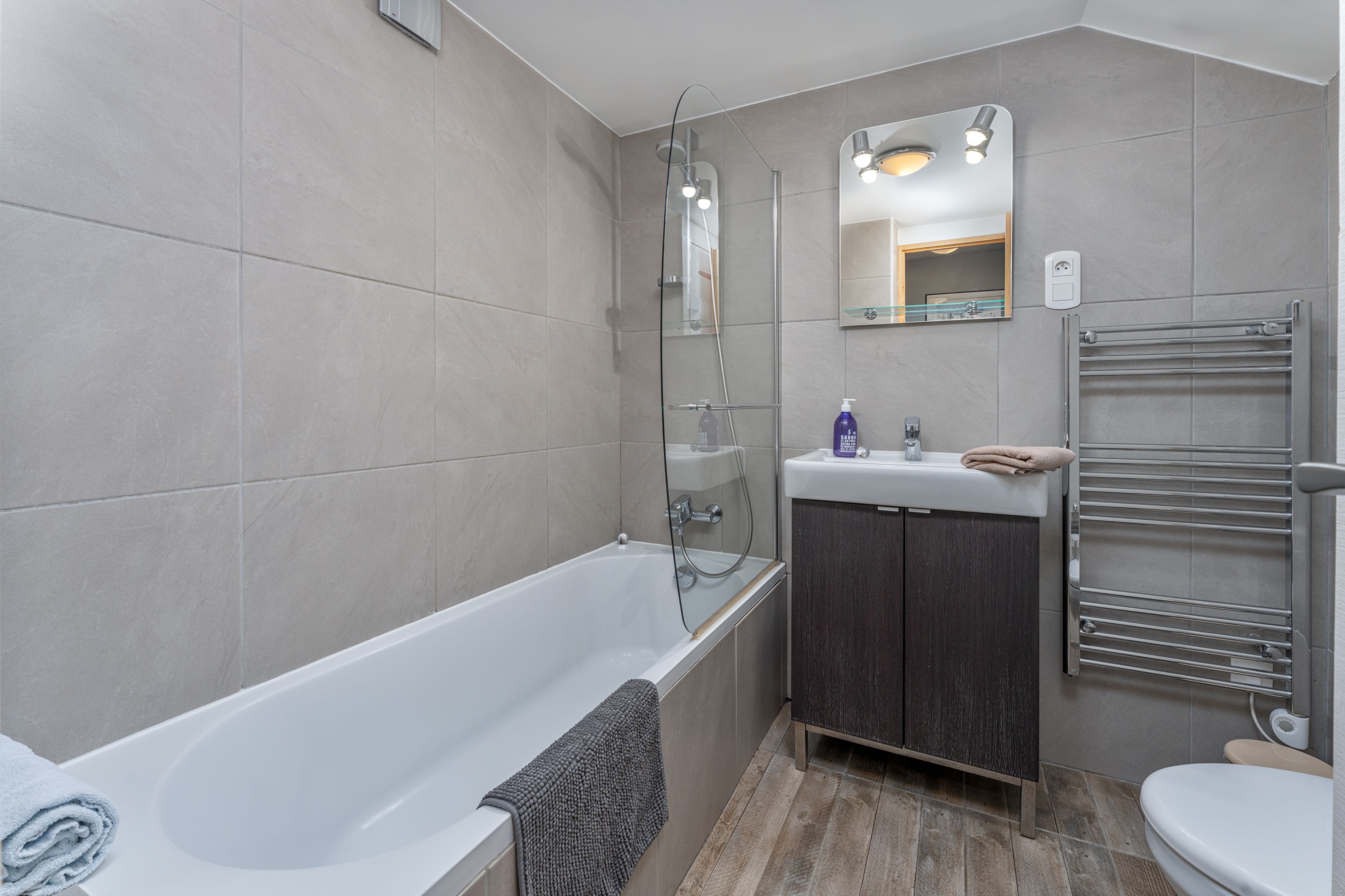 Linge de maison, torchons, tapis de bain et serviettes inclus